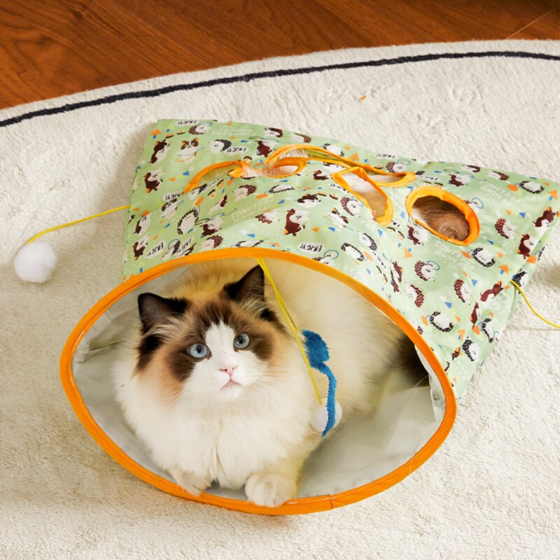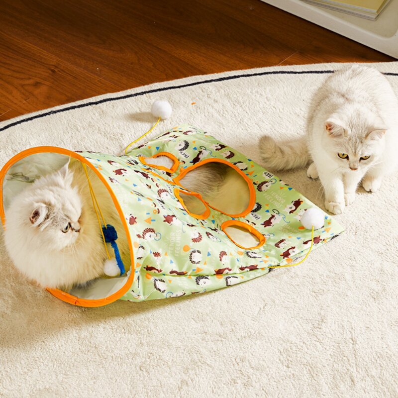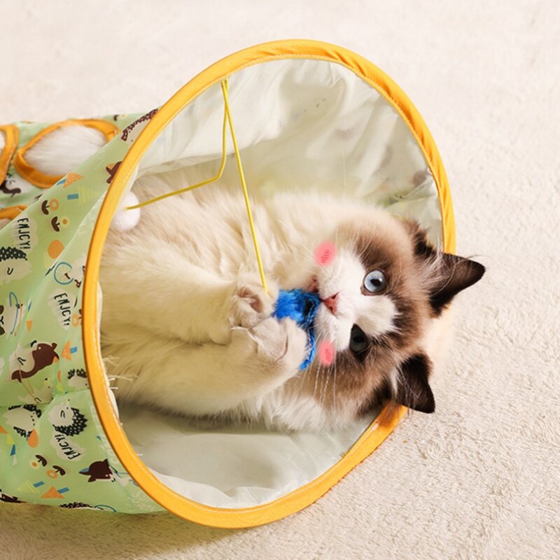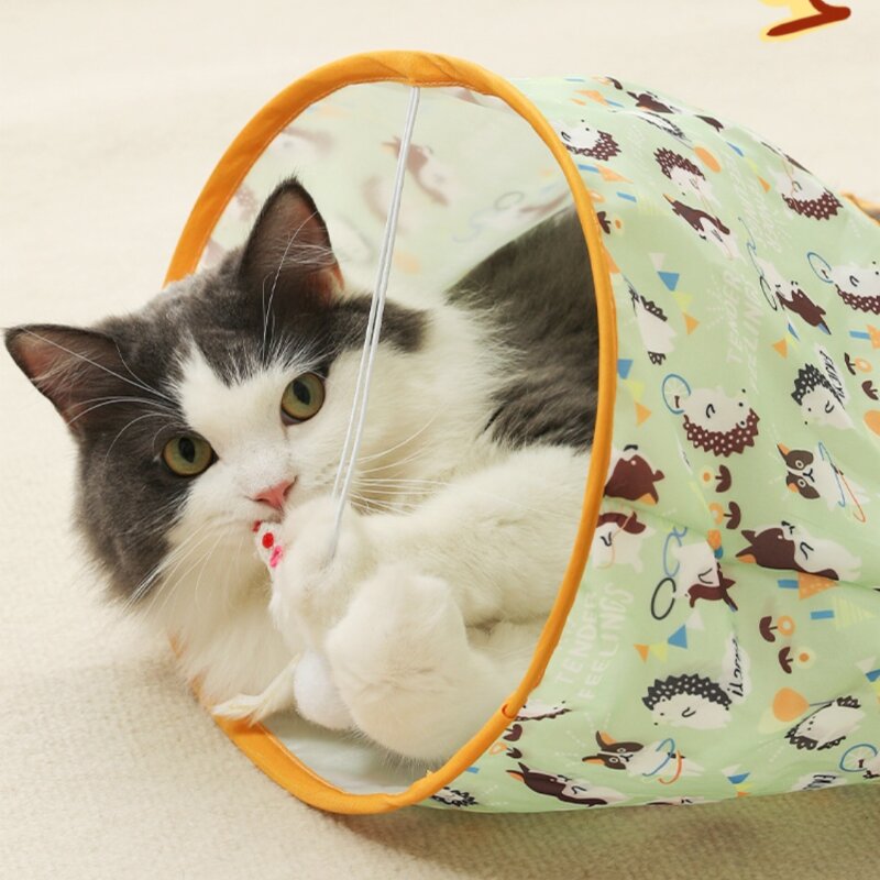 تونل بازی گربه یک وسیله سرگرم‌کننده برای افزایش تحرک و بازی روزانه گربه‌هاست. جنس خش‌خش‌دار تونل و آویز داخل آن، حس شکار و کنجکاوی گربه را تحریک می‌کند و فضایی جذاب برای بازی، کمین کردن و مخفی شدن ایجاد می‌کند.
